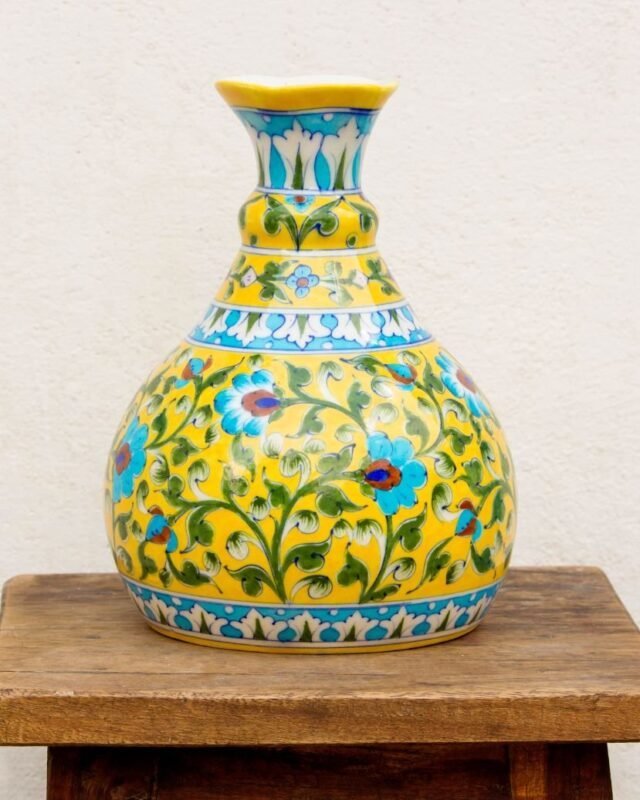Blue Pottery- Handcrafted Decorative Vase(Yellow)
