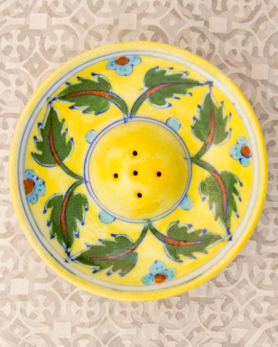 Blue Pottery Floral Design Tray- Yellow