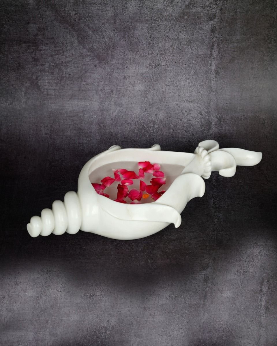 Fascinating marble Urli carved in the shape of a Shankha adds to its auspiciousness. It can be filled with water to attract abundance and also it’s a great piece for home décor. You can also gift it to your loved ones.